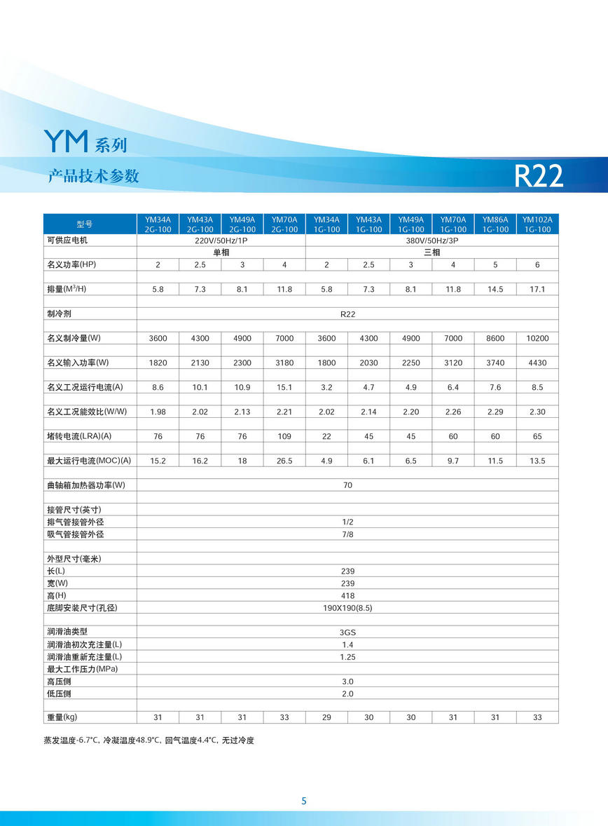 5、英华特目前提供的制冷产品,种类丰富,功率范围为2-15HP。YM/YF涡旋压缩机适用于中高温制冷领域